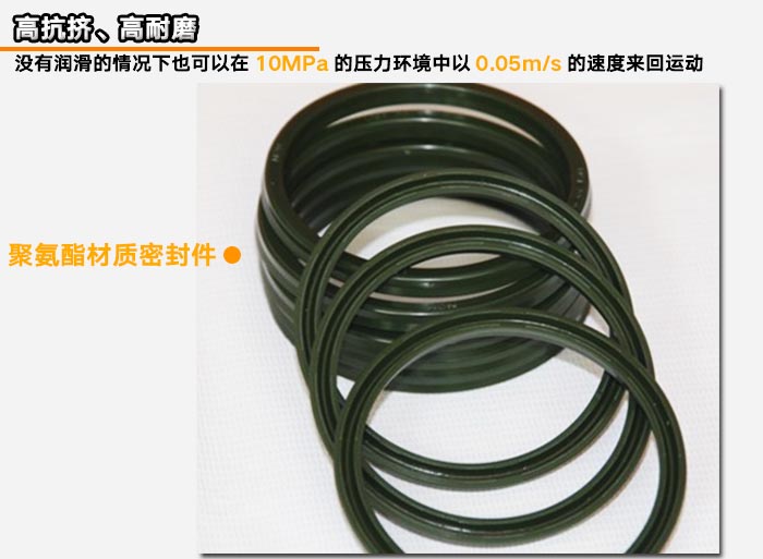 解决方法:更换优质聚氨酯密封件,聚氨酯密封材质的密封件在条件相同的情况下,同丁腈材质的橡胶对比,寿命比丁腈材质高达50倍;具备高抗挤出能力和高耐磨的特点。可在没有润滑的情况下也可以在10MPa的压力环境中以0.05m/s的速度来回运动;