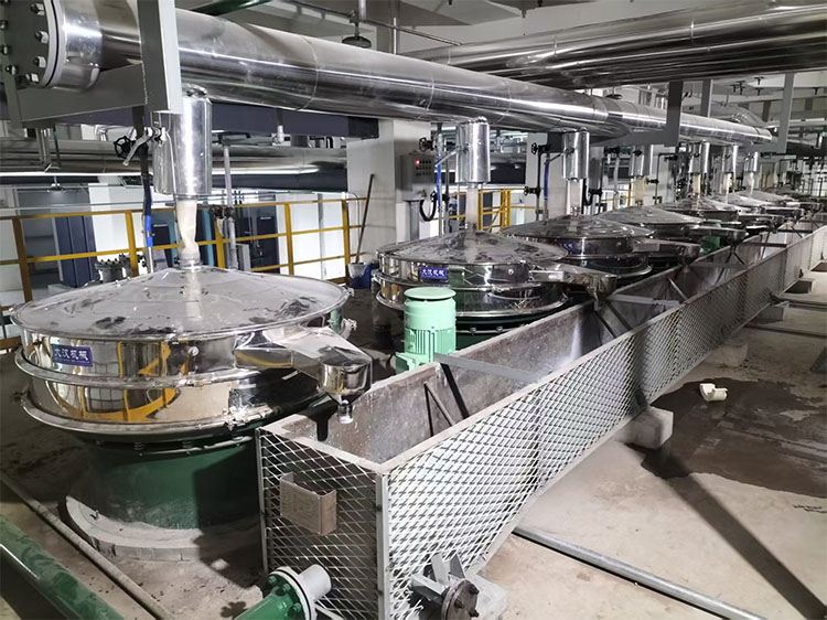 去除杂质和大颗粒:碳酸钙浆液在研磨、制浆过程中,容易混入砂石、金属碎屑、未研磨透的粗颗粒碳酸钙等杂质,这些杂质会影响下游产品质量,这时需要用振动筛将碳酸钙浆液中的大颗粒或杂质异物过滤掉,提高浆液纯度。